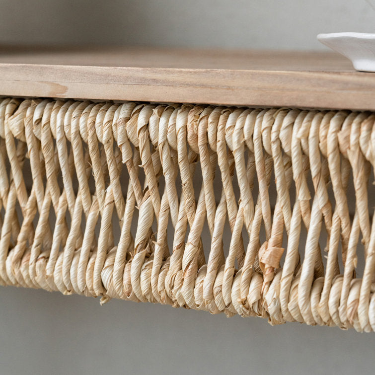 Introducing our stunningly designed Console Table - the perfect addition to any home decor! Made from high-quality natural wood and adorned with beautiful straw and rope accents, this console table is both functional and stylish. With a spacious tabletop, you can easily display your favorite decor items or use it as a practical storage solution. The natural materials used in its construction give it a rustic feel, making it perfect for any farmhouse or coastal themed home. Elevate your home decor with our Console Table and enjoy the perfect blend of style and functionality!